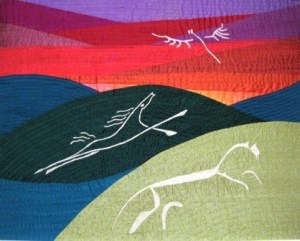 Chasing the Sunset March 21, 2017January 26, 2019 wfleckner Applique background with machine stitching and free machined figures.